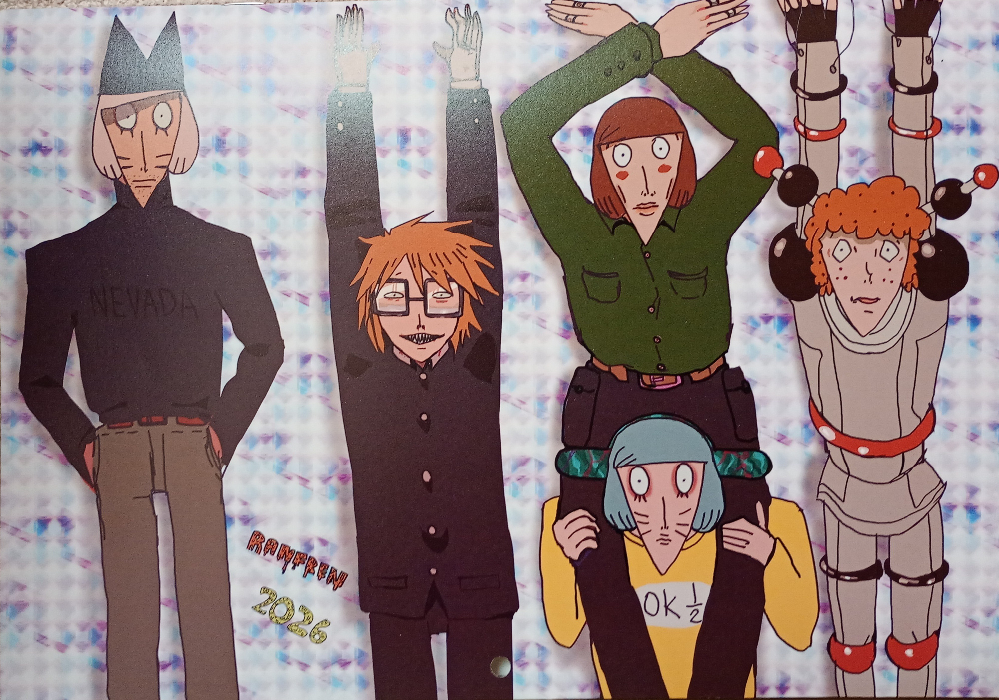 A calendar with a mix of styles throughout and parody images, slice of life, featuring Randal and his friends.(´・ω・`) -12 artwork for each month including some extra pages for fun. -A4 size and become A3 when opened. Hanging style of Calendar for wall. -Includes Japanese national holidays plus statutory holidays observed in British Columbia, Canada. Randal's birthday is included officially. -Each month has own quote and saying, for staying alive. ¥2500 [currently sold out for first wave. Second wave selling in